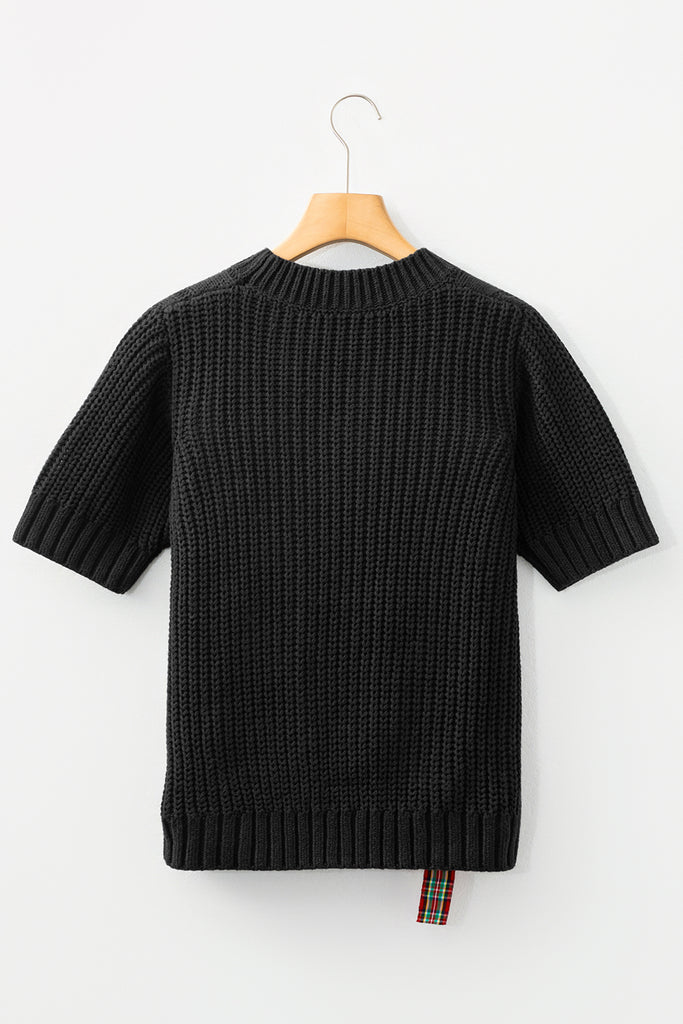 Plaid Lace up Christmas Short Sleeve Sweater