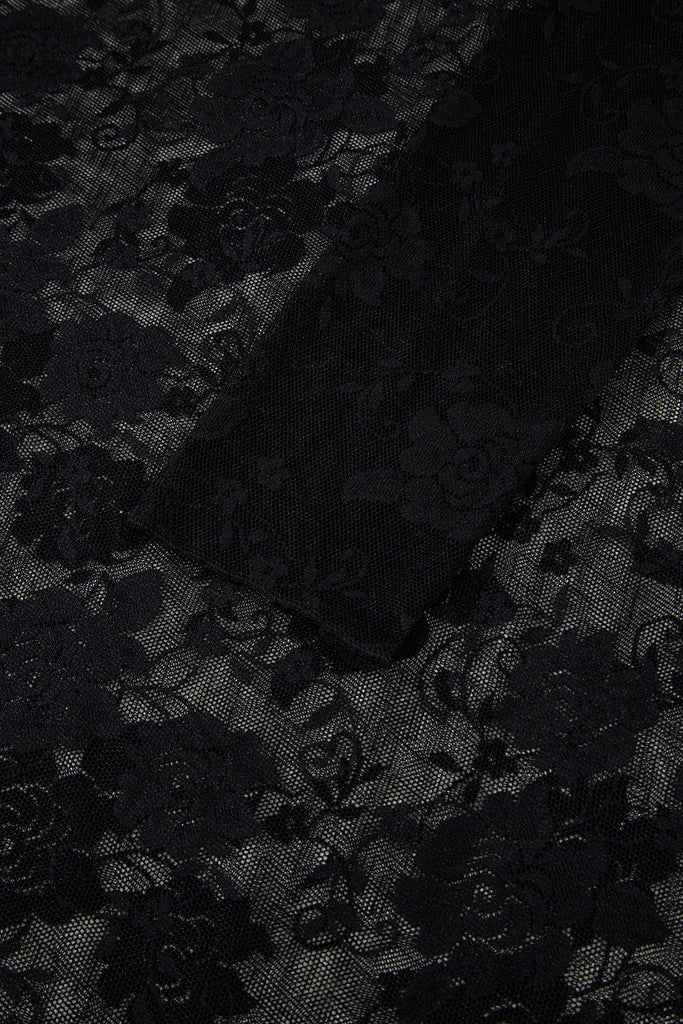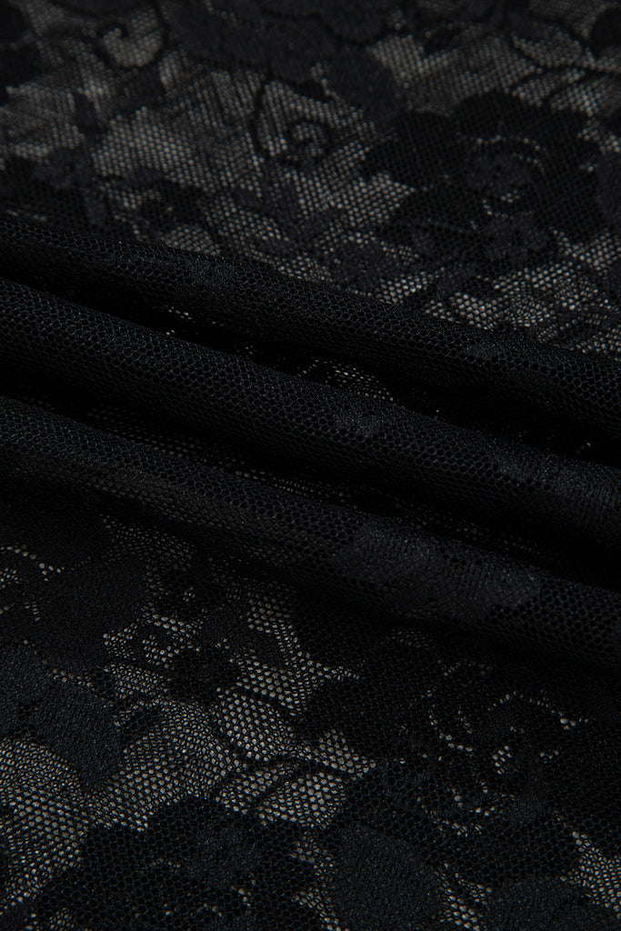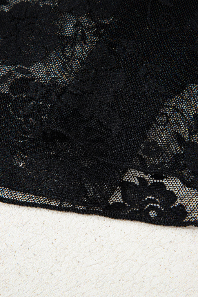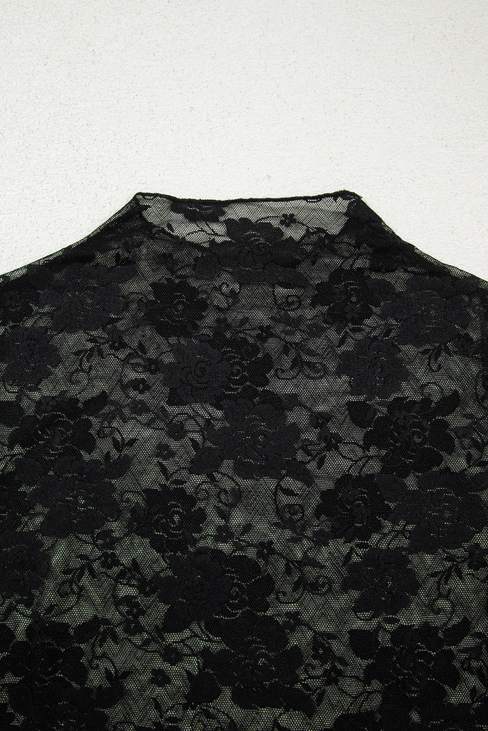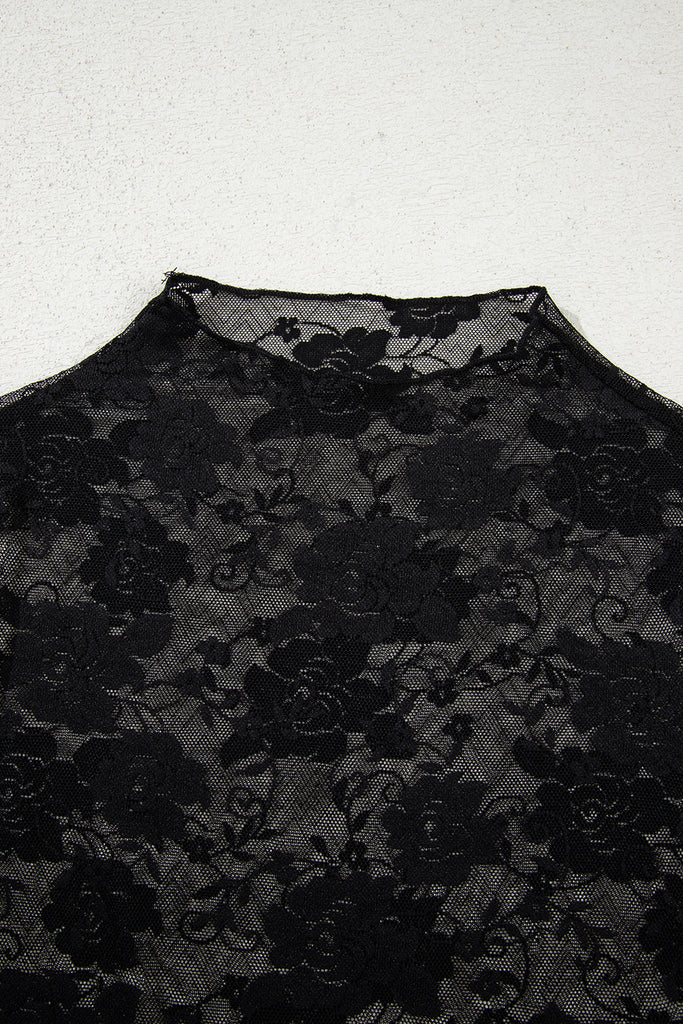 Black Sheer Floral Lace Mesh Mock Neck Long Sleeve Top
