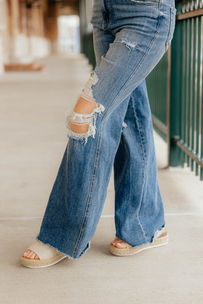 FIT: Very Stretchy, Relaxed Dad Jean/Wide Leg Style with a High Rise Waist.