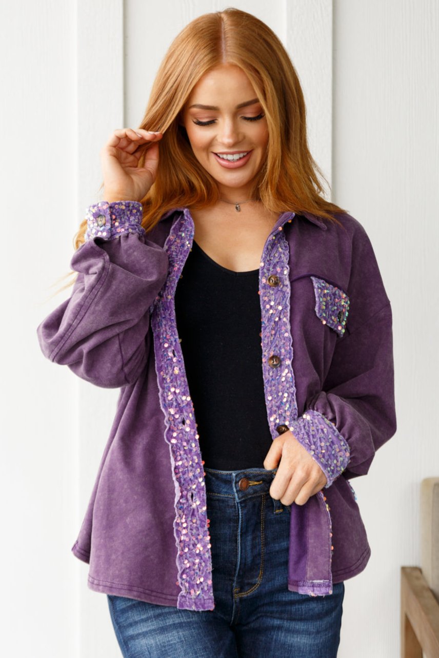 Take your look to the next level with our Chaos of Sequins Shacket! Crafted from comfortable Mineral Wash French Terry, this delightful jacket delights the senses with intricate Sequin Accent and stylish Decorative Pockets. Feel fashionable and free with Side Pockets for ultimate convenience. Who's ready for a chaos sequins?