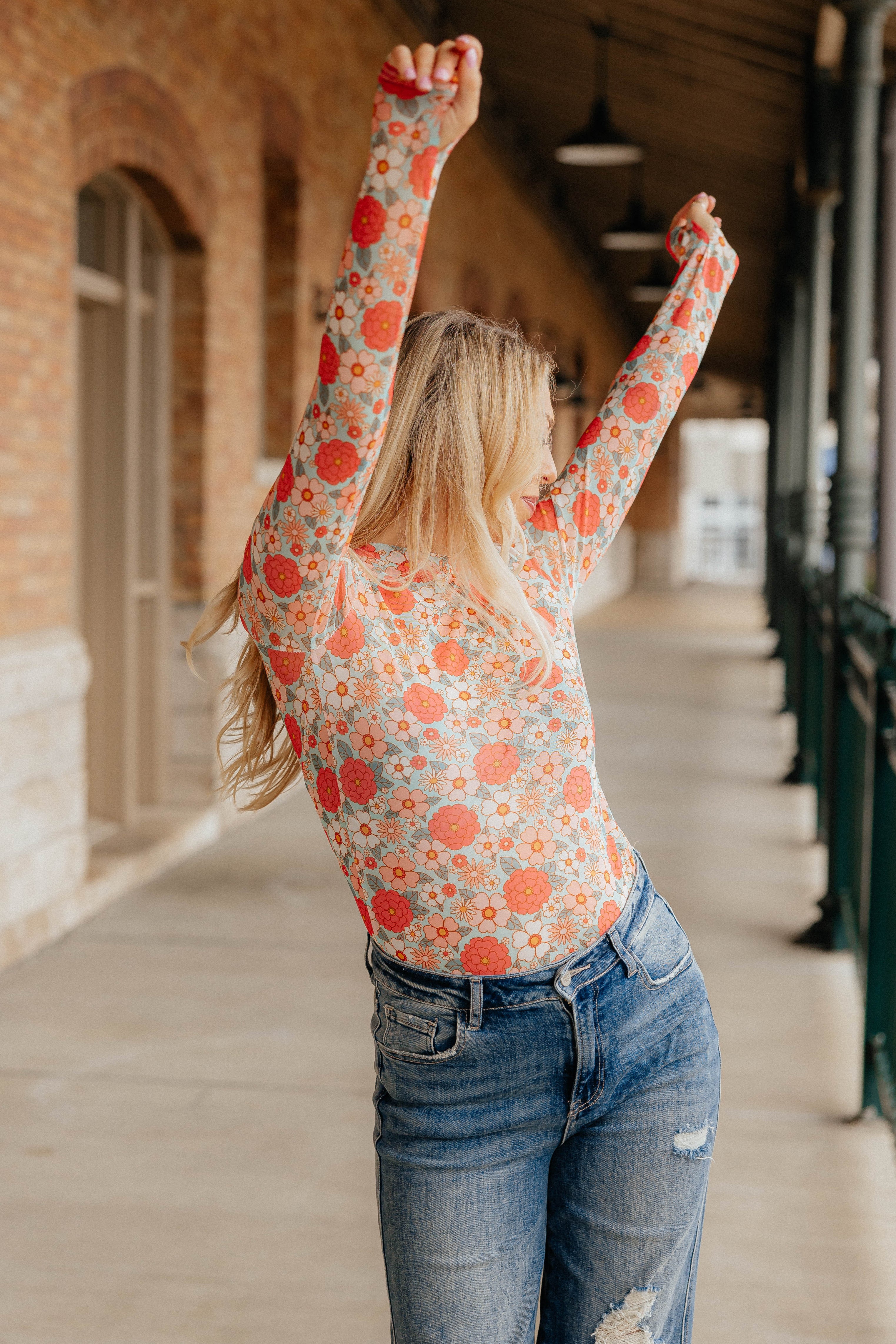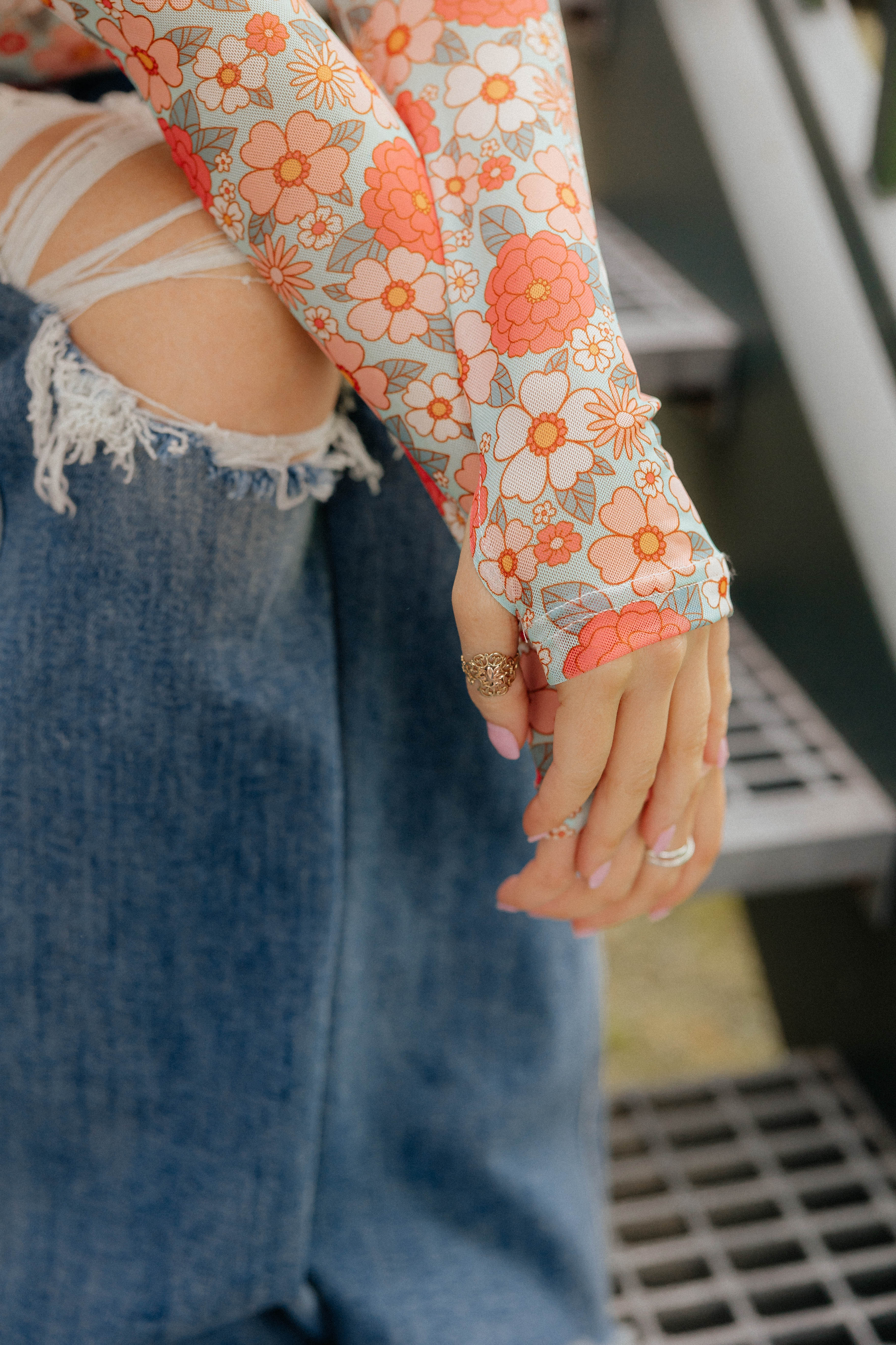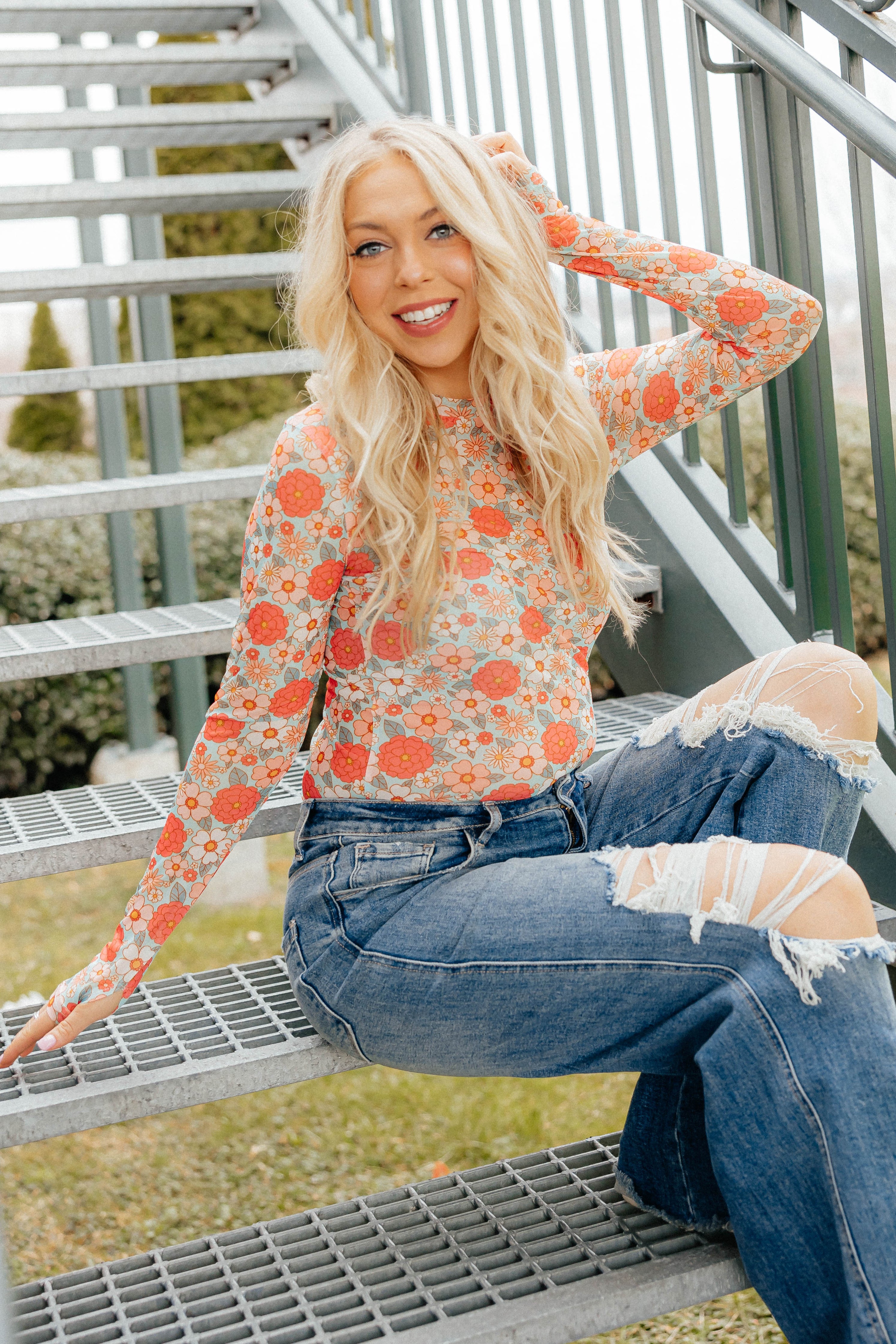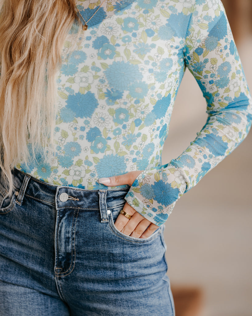 Our new Mesh Tops are HERE!! Super cute for layering! Stretchy mesh print long-sleeve top features a totally sheer design. Perfect worn alone or paired under your favorite Lola cardigan, vest or sweater! Crew neck and thumbhole details sleeves. Original will ship immediately as where the blue floral will take 7-10 days to ship.
