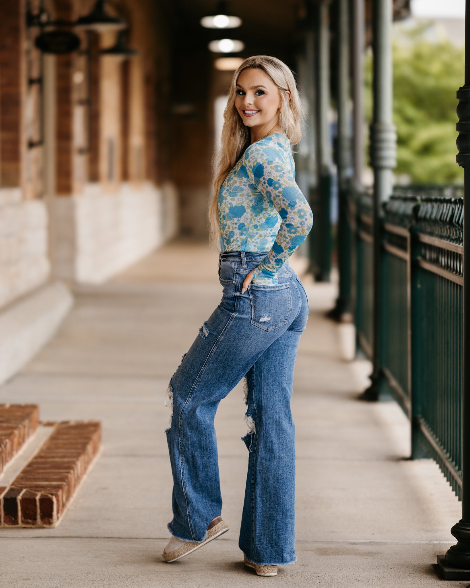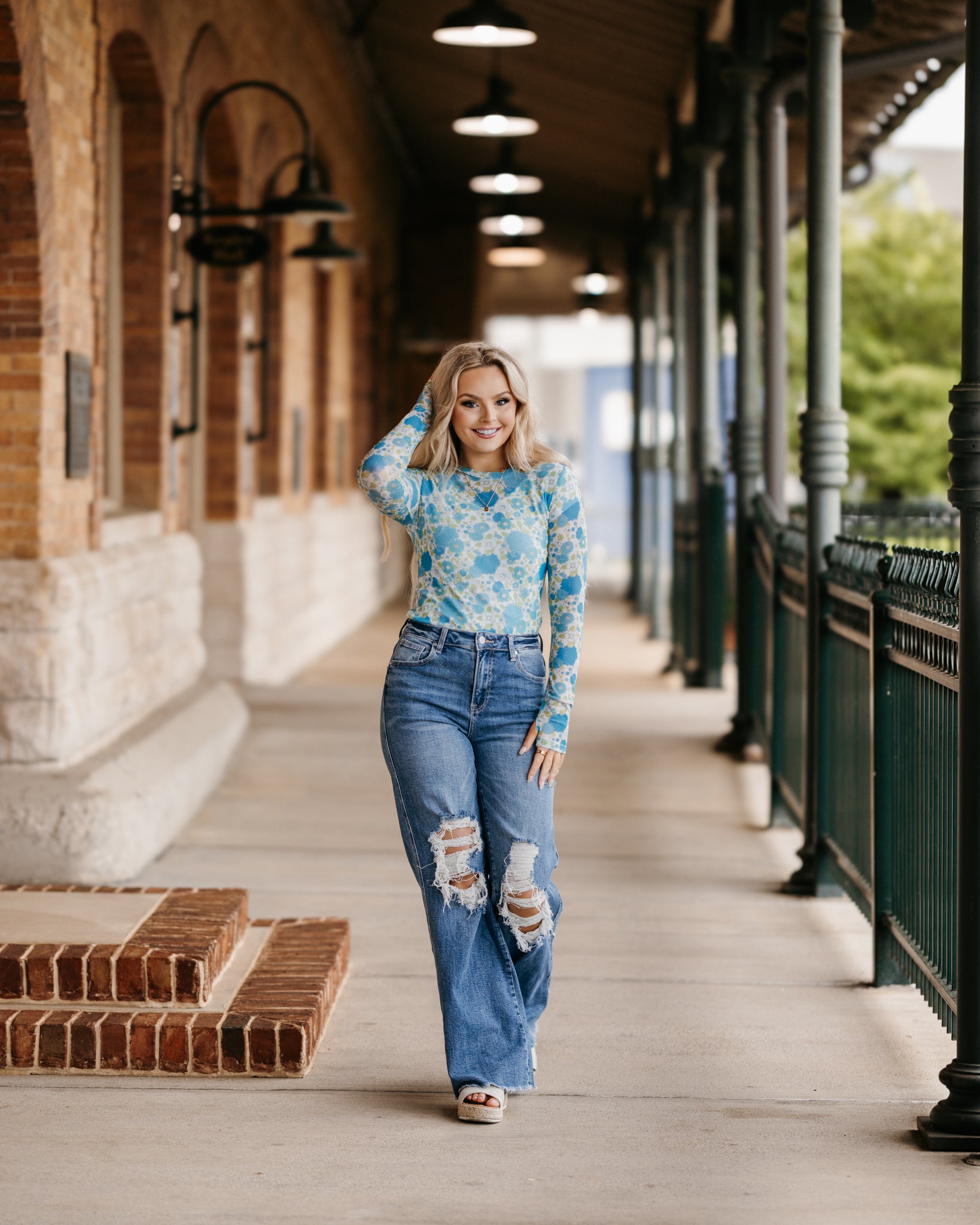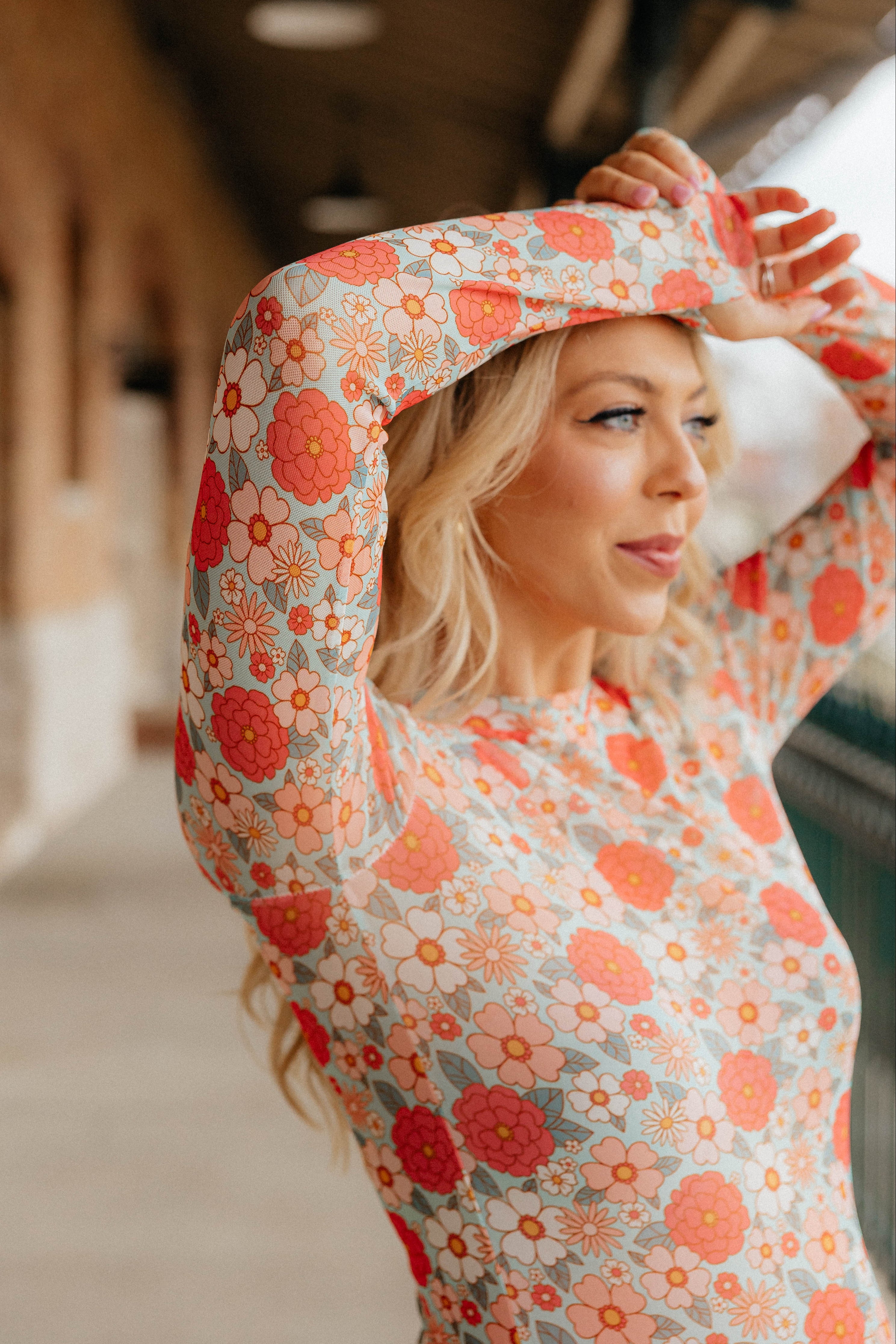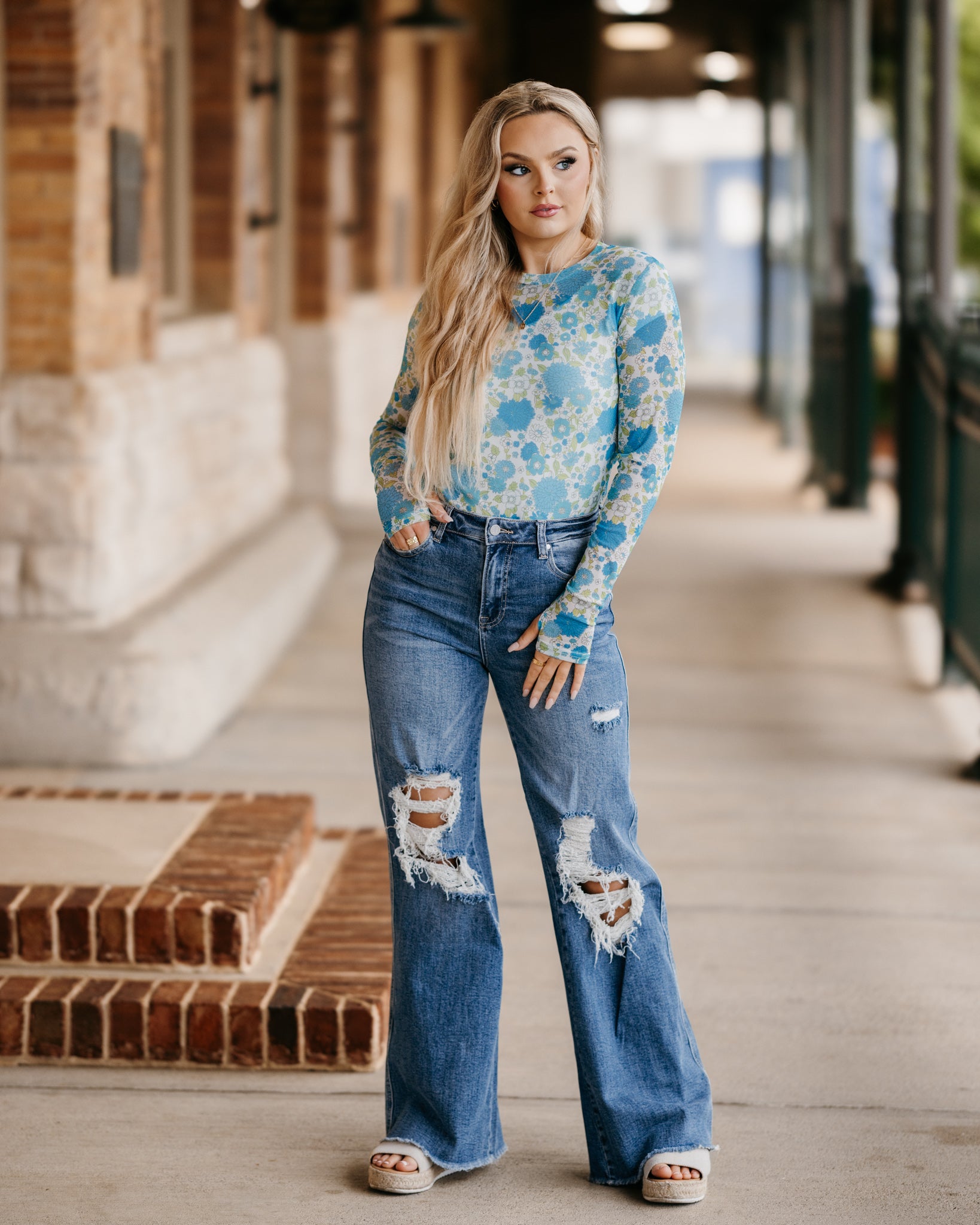 Our new Mesh Tops are HERE!! Super cute for layering! Stretchy mesh print long-sleeve top features a totally sheer design. Perfect worn alone or paired under your favorite Lola cardigan, vest or sweater! Crew neck and thumbhole details sleeves. Original will ship immediately as where the blue floral will take 7-10 days to ship.
