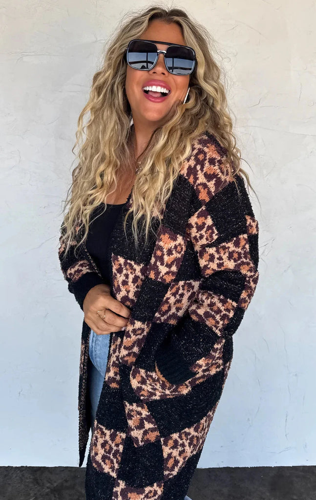 PREORDER: Checkered Leopard Cardigan