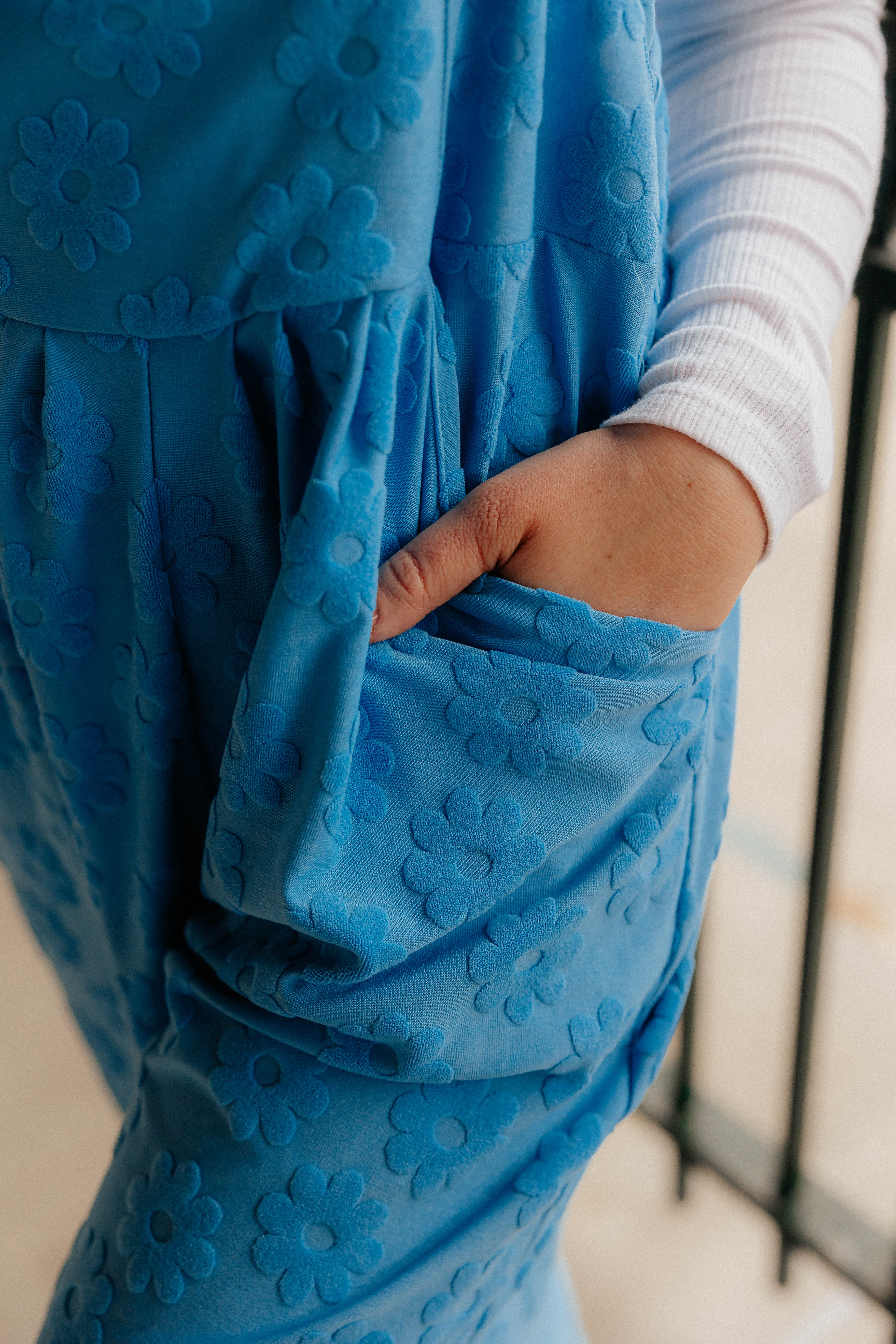 Our most popular overalls now in our daisy terry fabric. Features include pockets and an adjustable button strap for fit, (fasten the button up or down to adjust length) complete with a stylish front pocket.