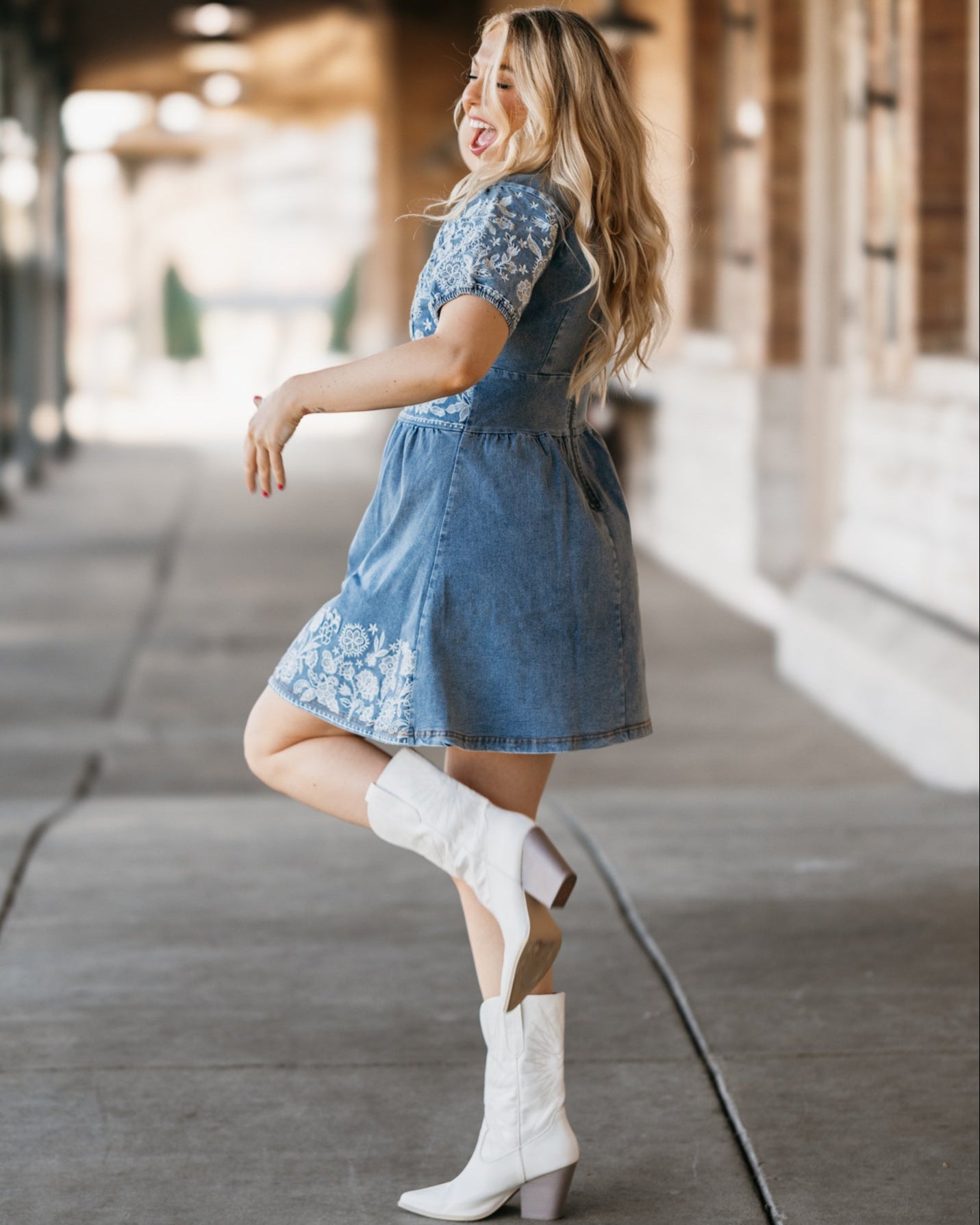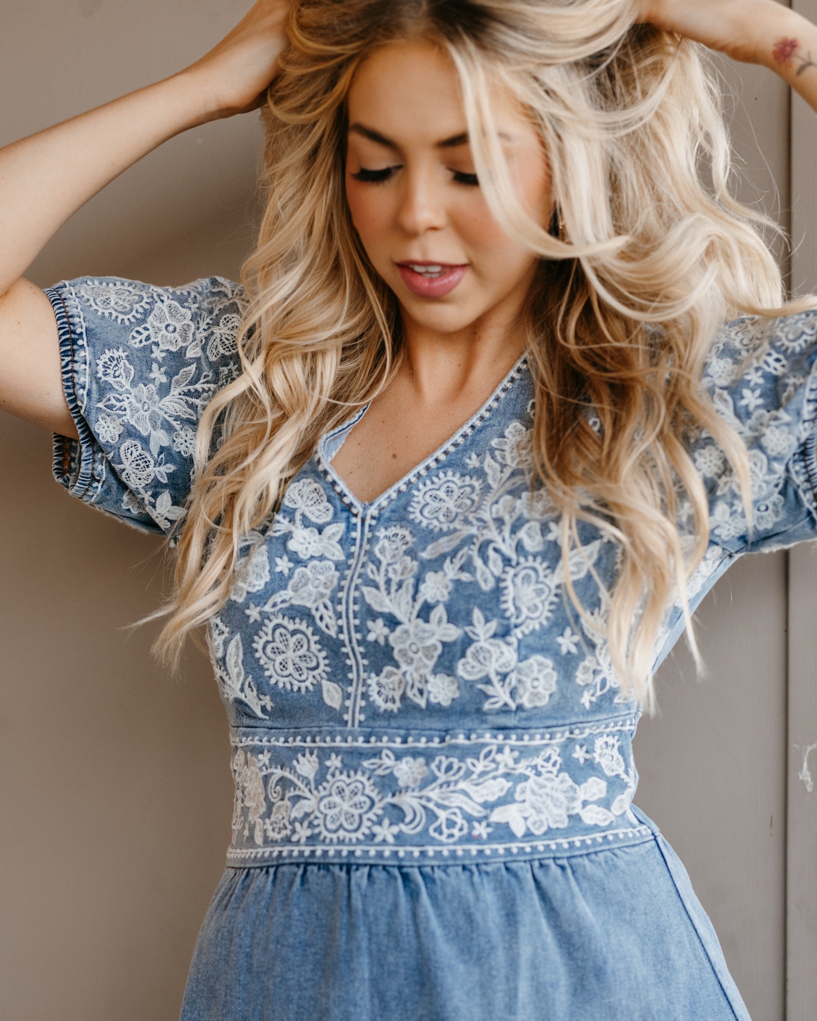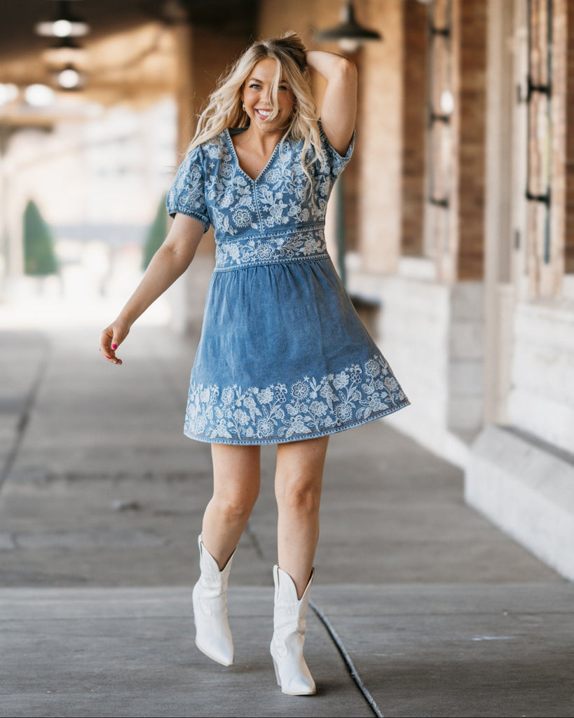 Country Thunder Denim Floral Embroidery Dress: Best Seller