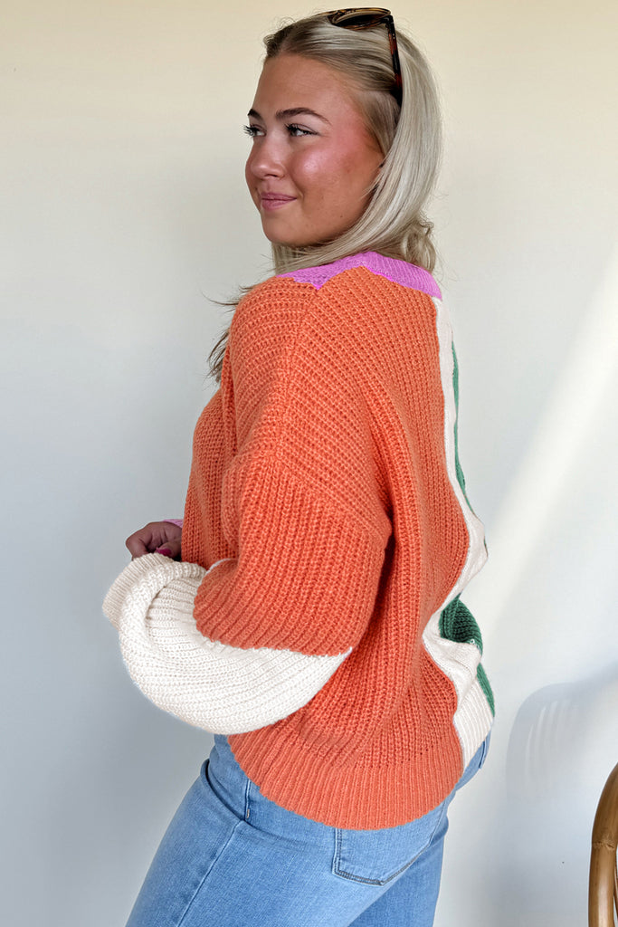 Desert Gold Color Block Textured Knit Drop Shoulder Loose Fit Sweater