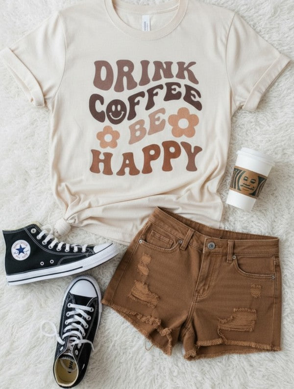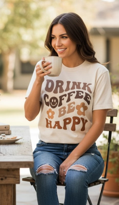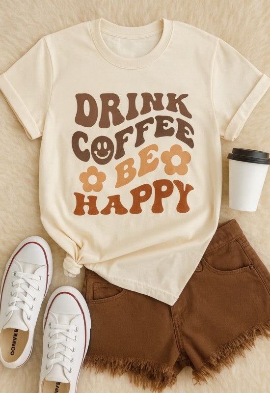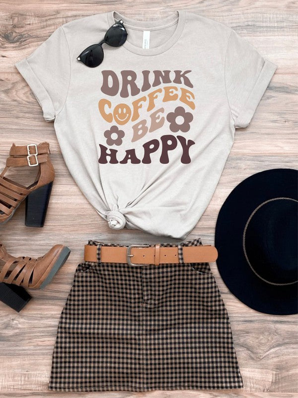 Drink Coffee and Be Happy Graphic Tee Shirt