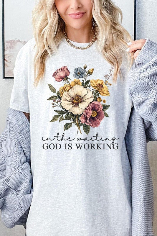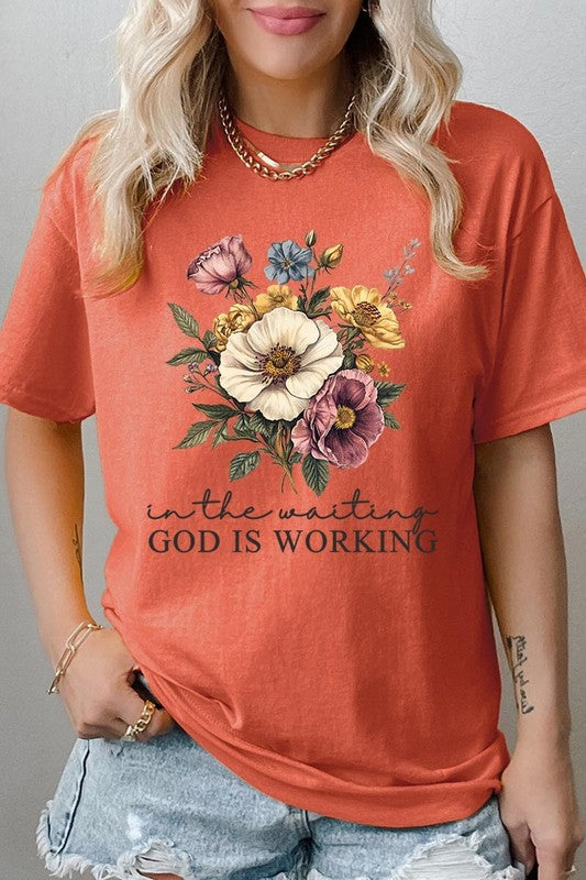 God is Working Vintage Floral Graphic Heavy Cotton Tee.