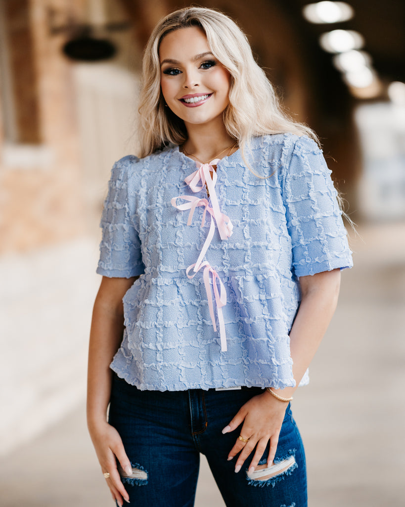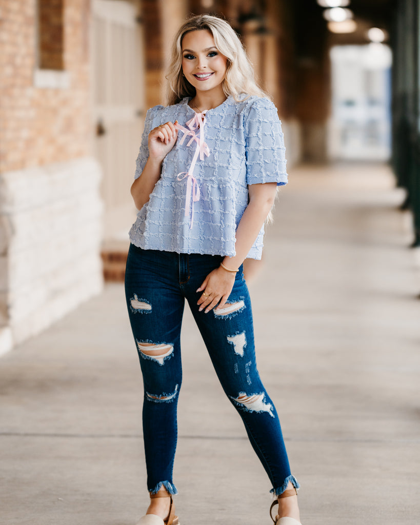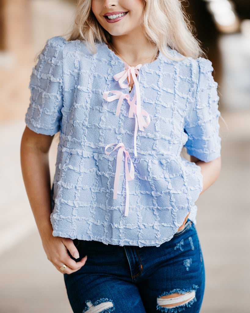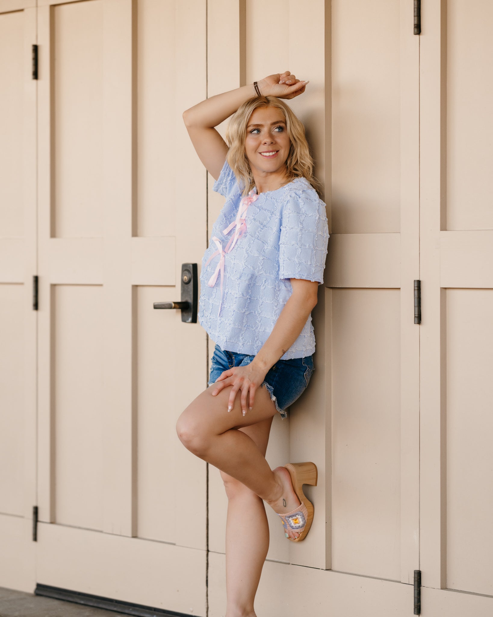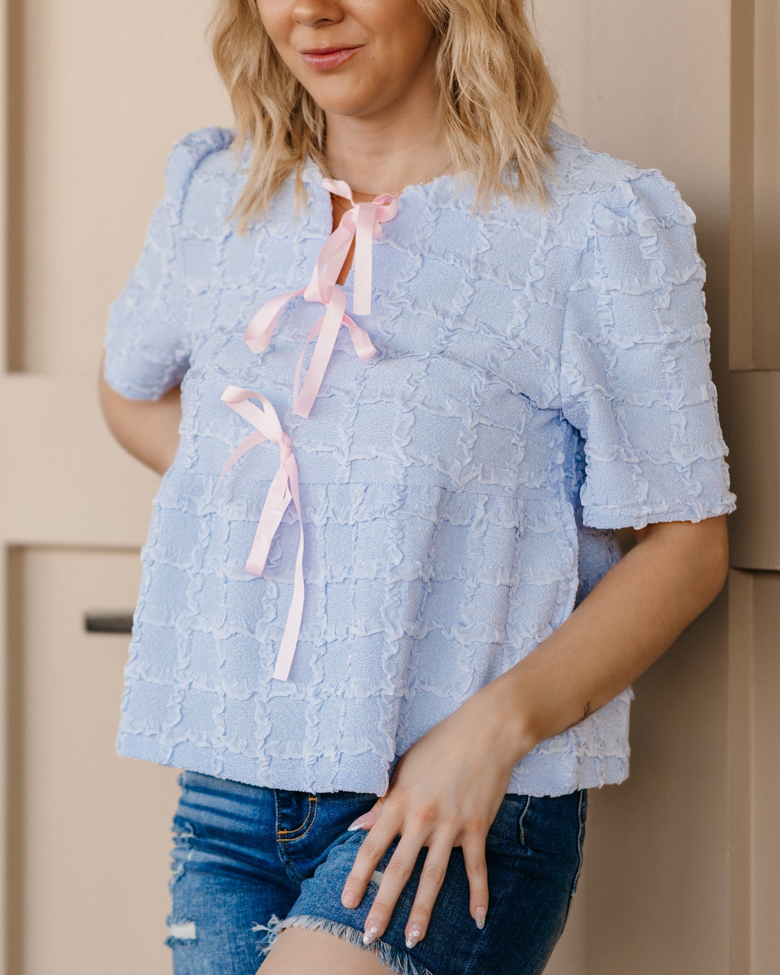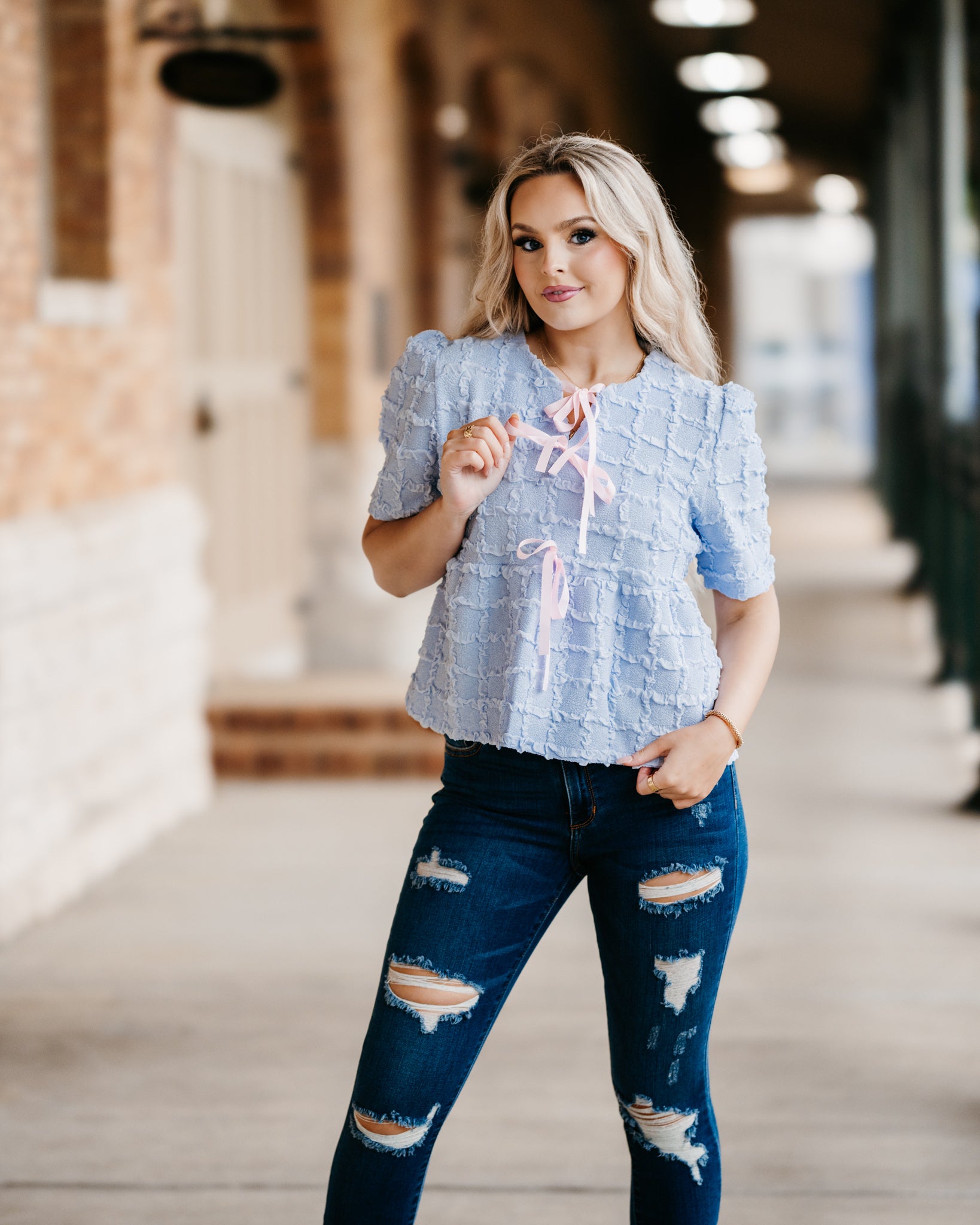 The cutest stretchy, high quality fabric with the most dainty bow front neckline! Babydoll fit with a slight bubble sleeve. You're going to love these! Perfect for wedding and baby showers!