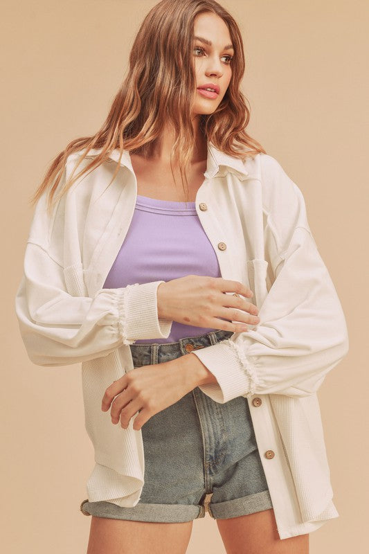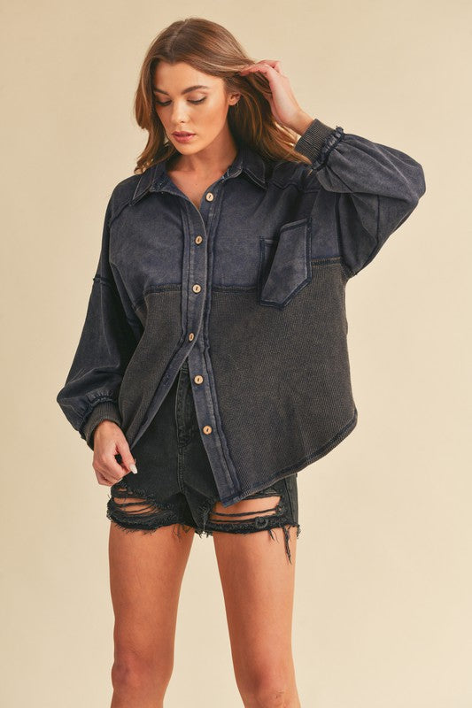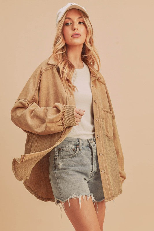 Judie jacket is the is the wardrobe must-have you didn't know you needed! She's mixed media beauty with the lived in look from the acid wash, perfect to pair with jeans or leggings.