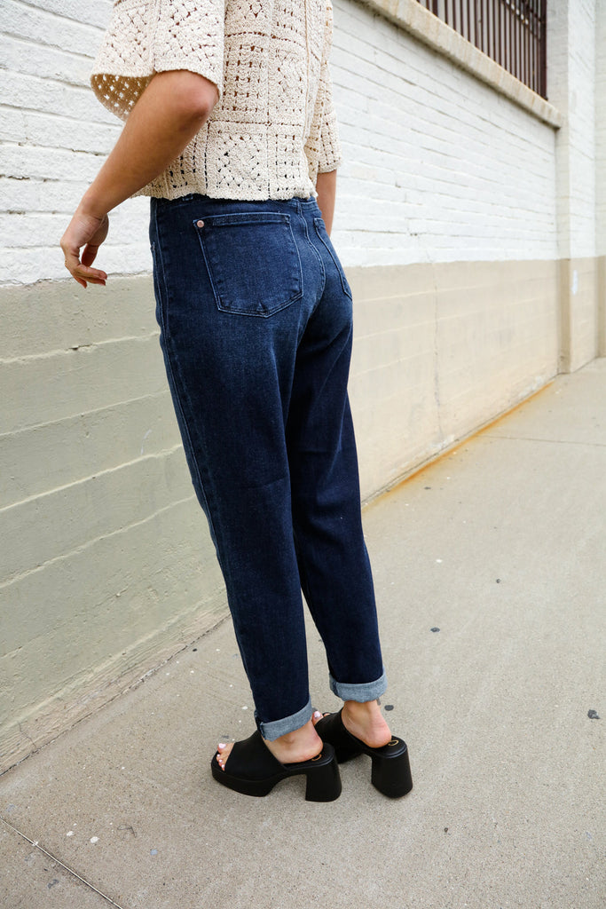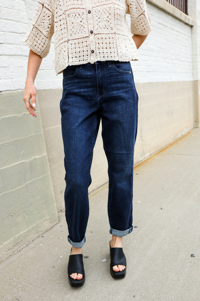 Judy Blue High-Rise Boyfriend Dark Blue Wash Jeans
