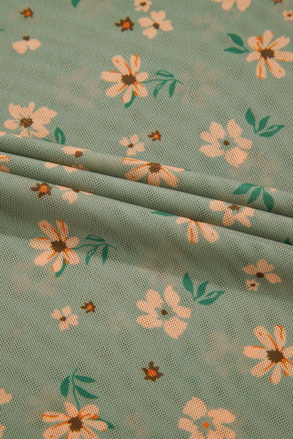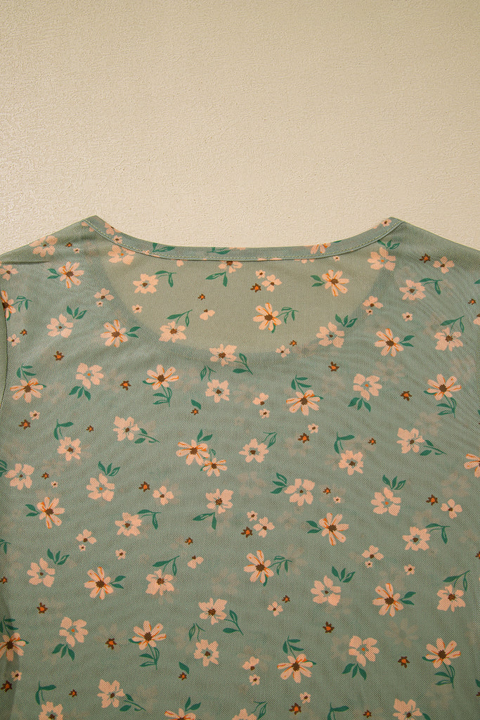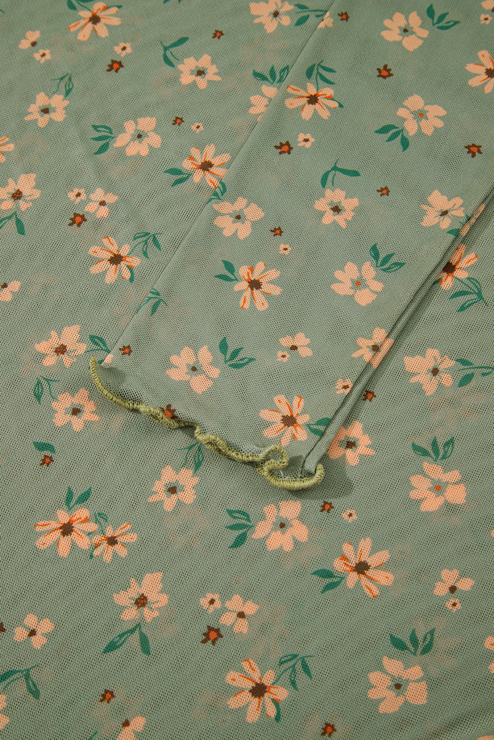 Laurel Green Vintage Floral Print Southern Style Mesh Long Sleeve Top