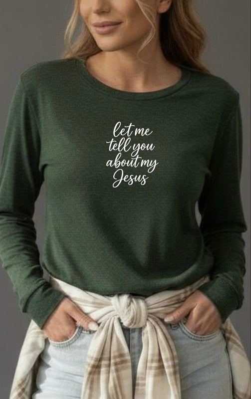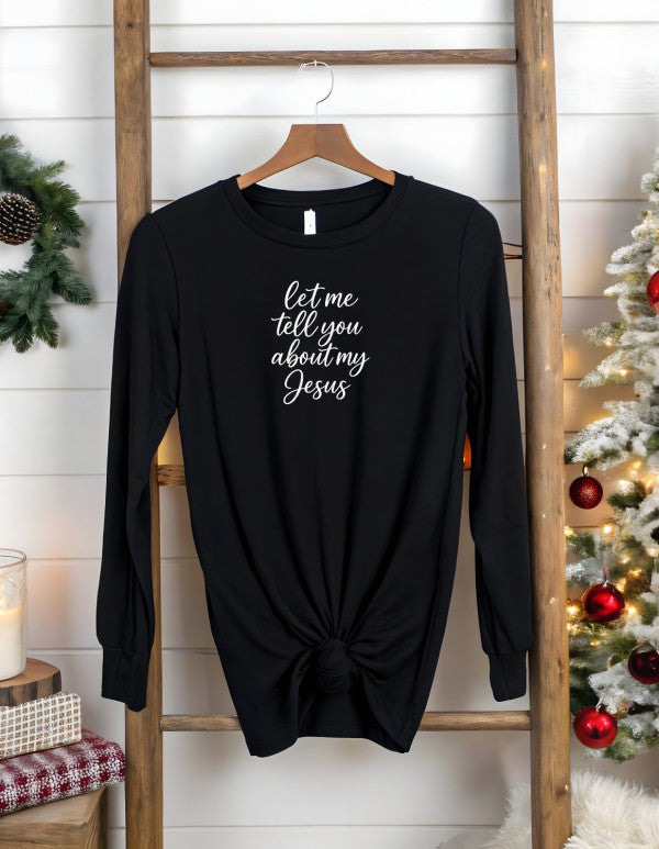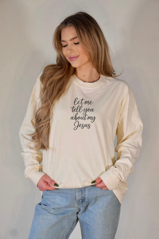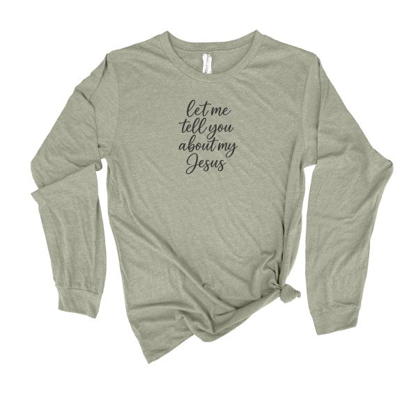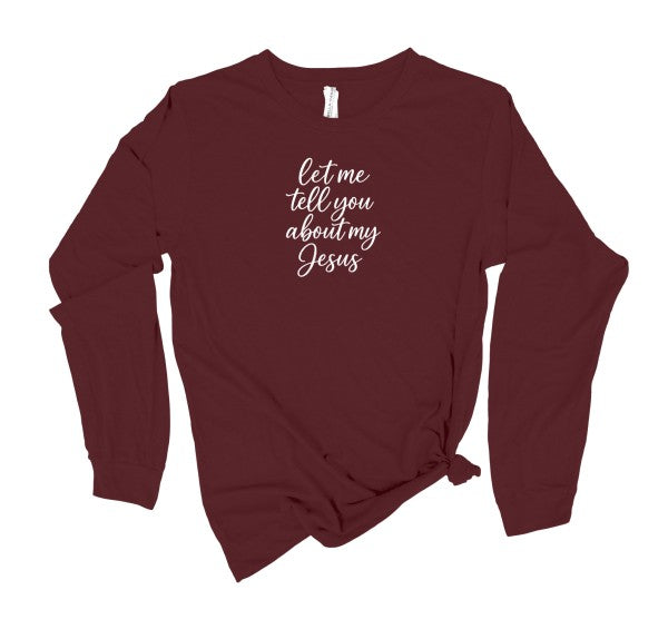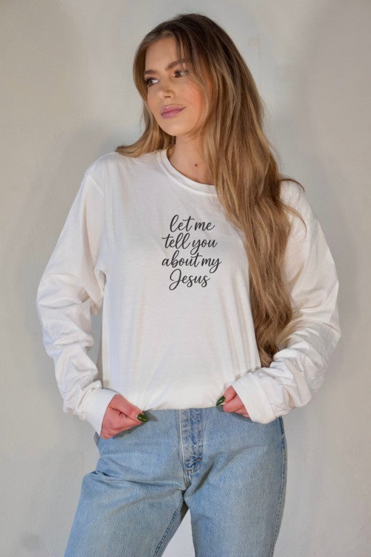 Let Me Tell You About My Jesus Long Sleeve Graphic Tee