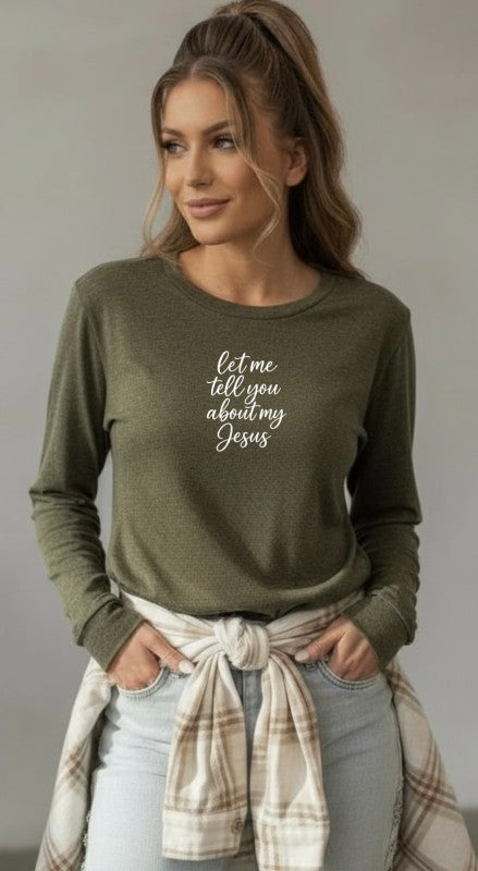Let Me Tell You About My Jesus Long Slv Graphic T