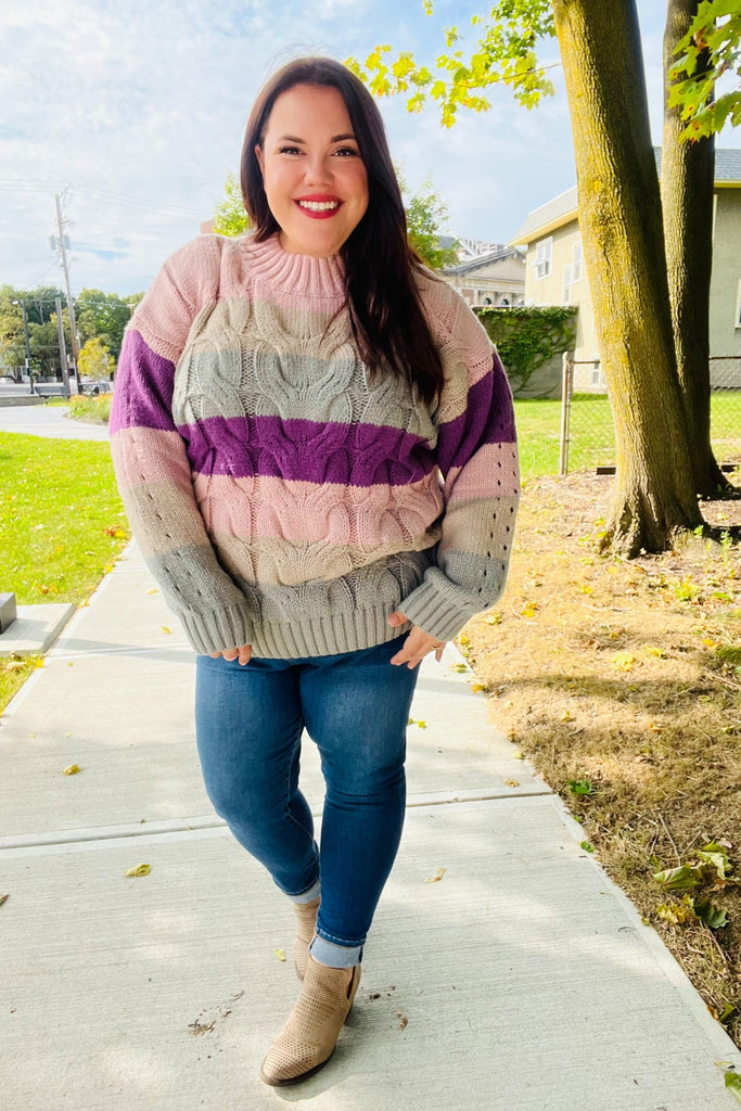 Fall For You Mauve Multicolor Stripe Cable Knit Mock Neck Sweater