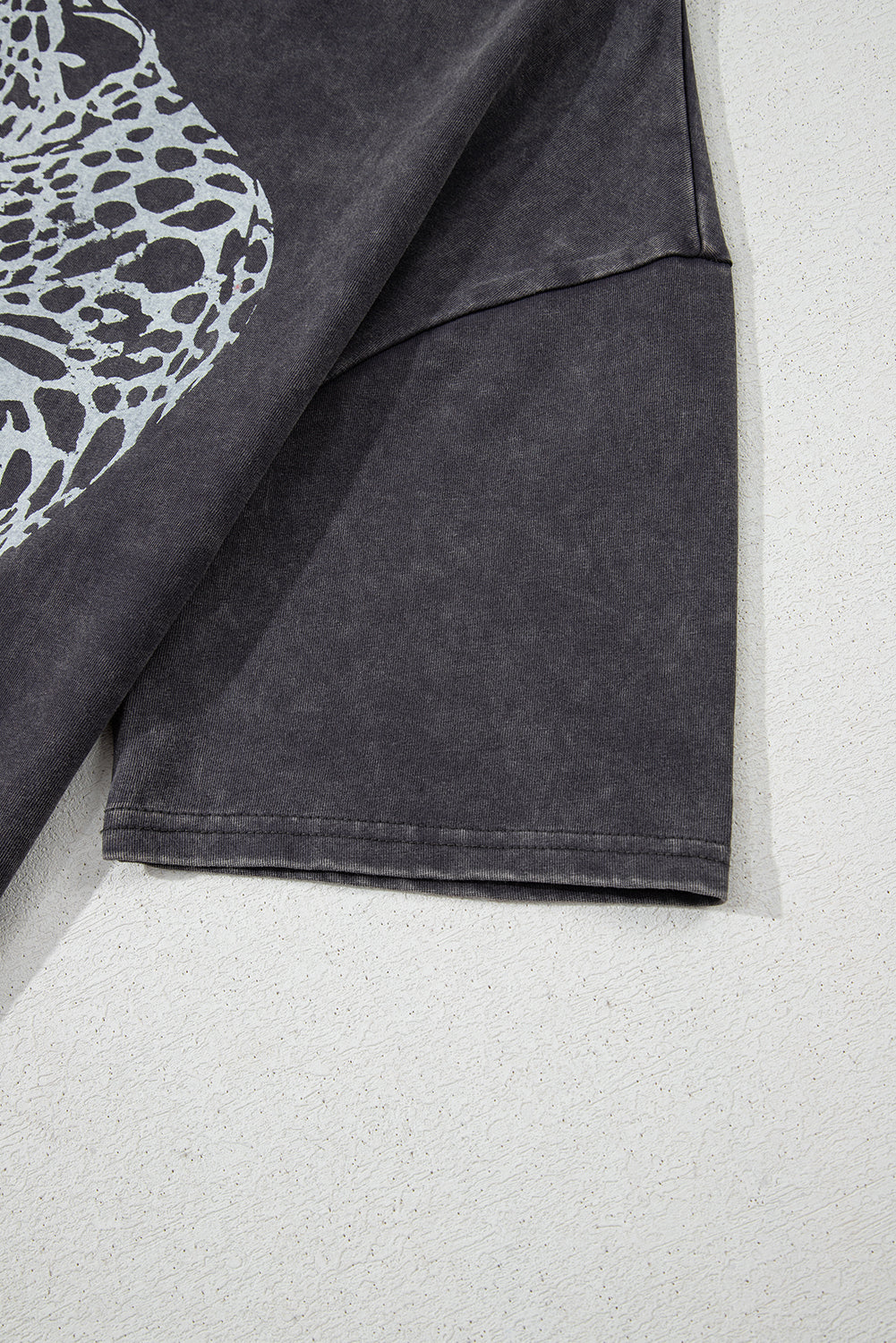 Grey Vintage Cheetah Mineral Wash Graphic Tee