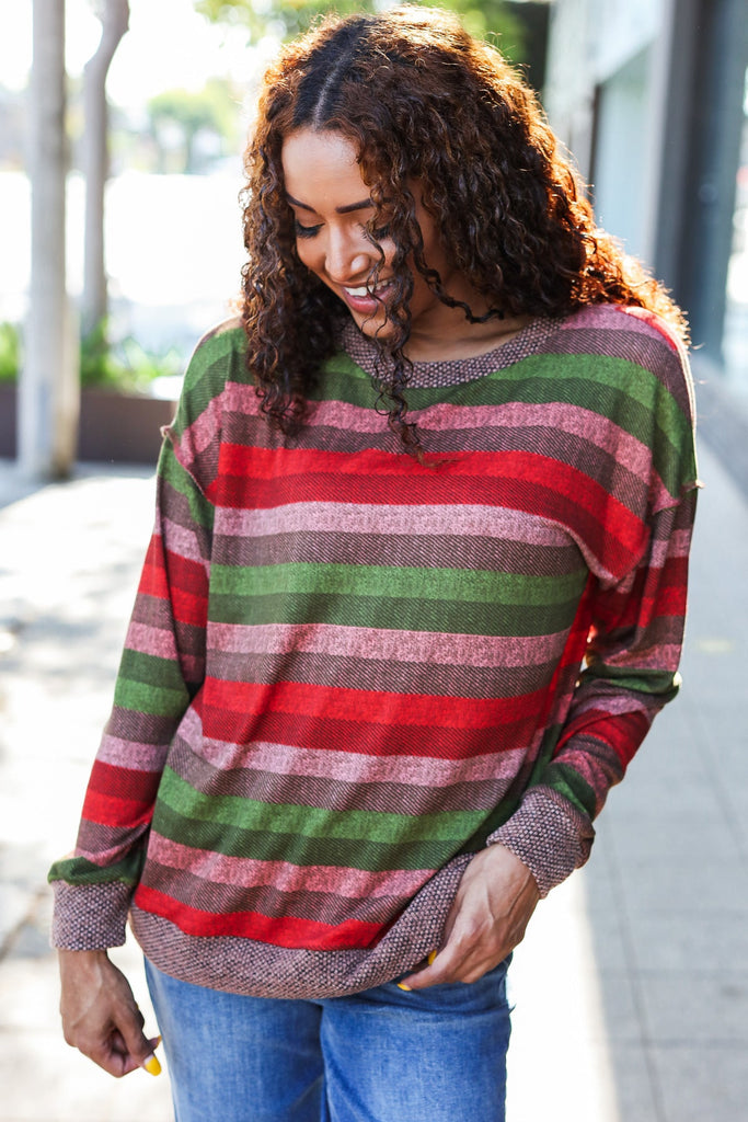 Perfectly You Olive & Mauve Stripe Two-Tone Banded Sweater Top