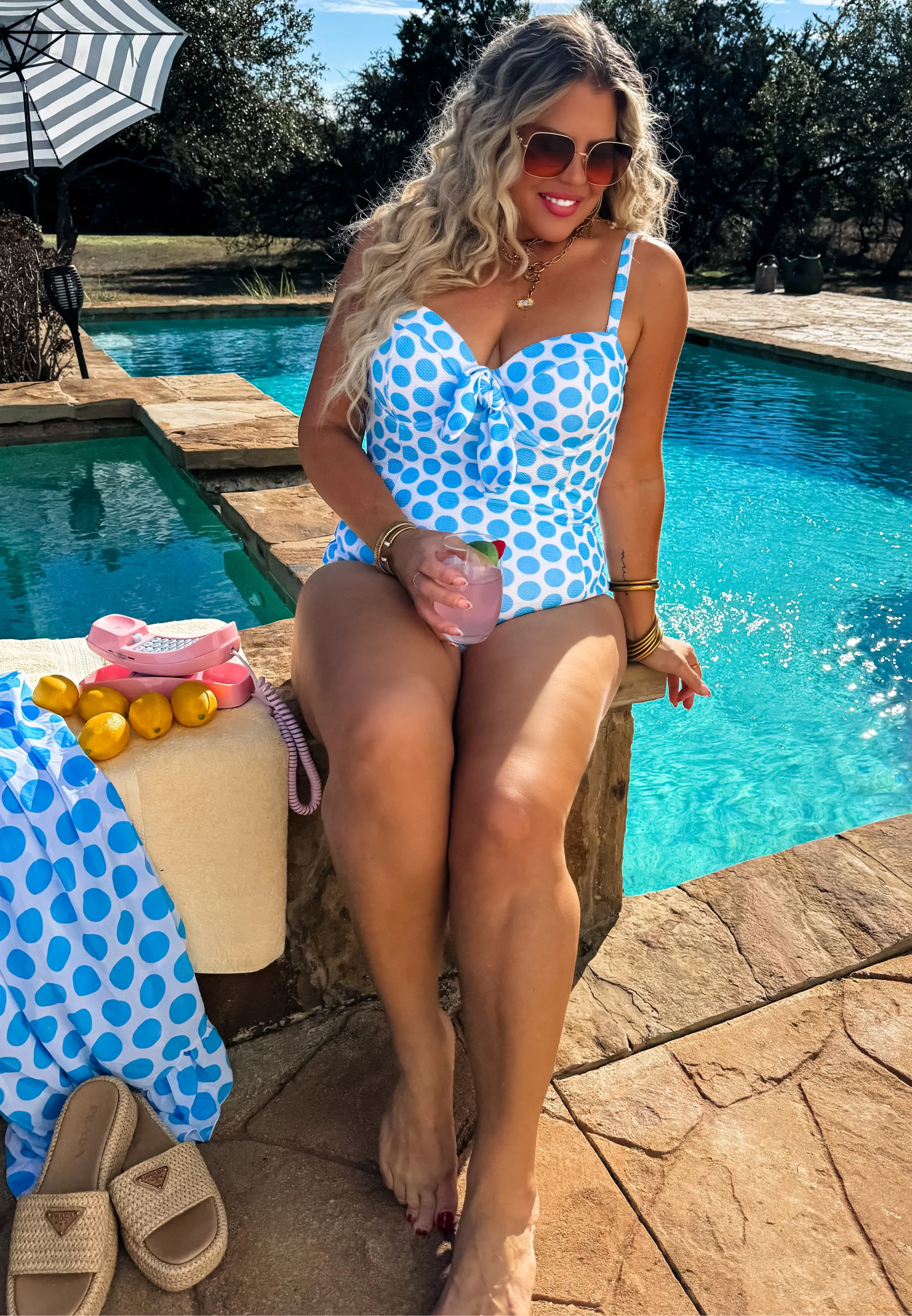 Size XL- 3X will ship 7-14 days after the order is placed. This show stopper polka dot bathing suit comes as a 2 PIECE SET! This amazing piece looks like a dress, but is a 1 piece suit with removable skirt bottom.