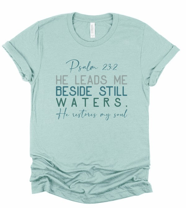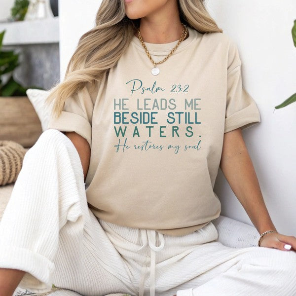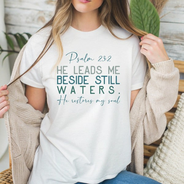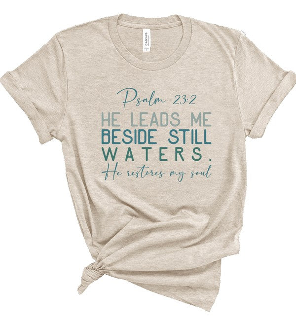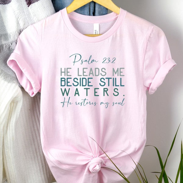 Psalm 23:2 He Leads Me Besides Still Water Graphic Tee