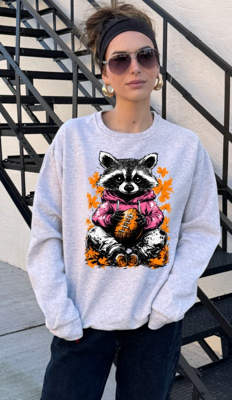 Racoon Football Graphic Crewneck Sweatshirt