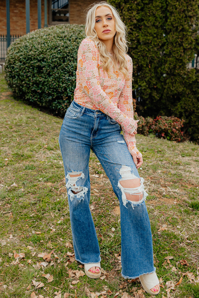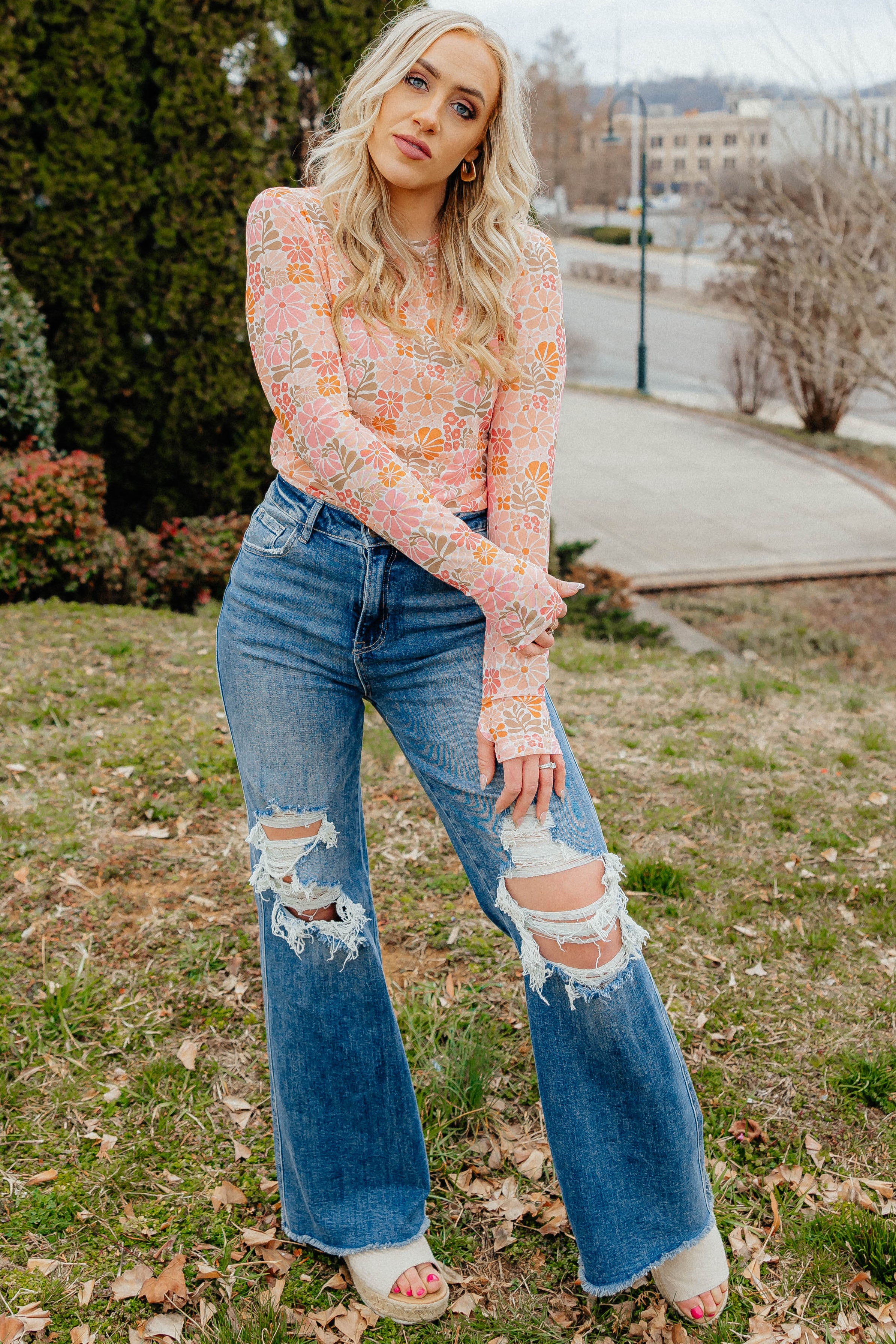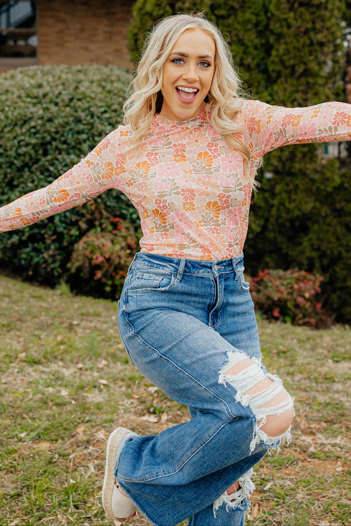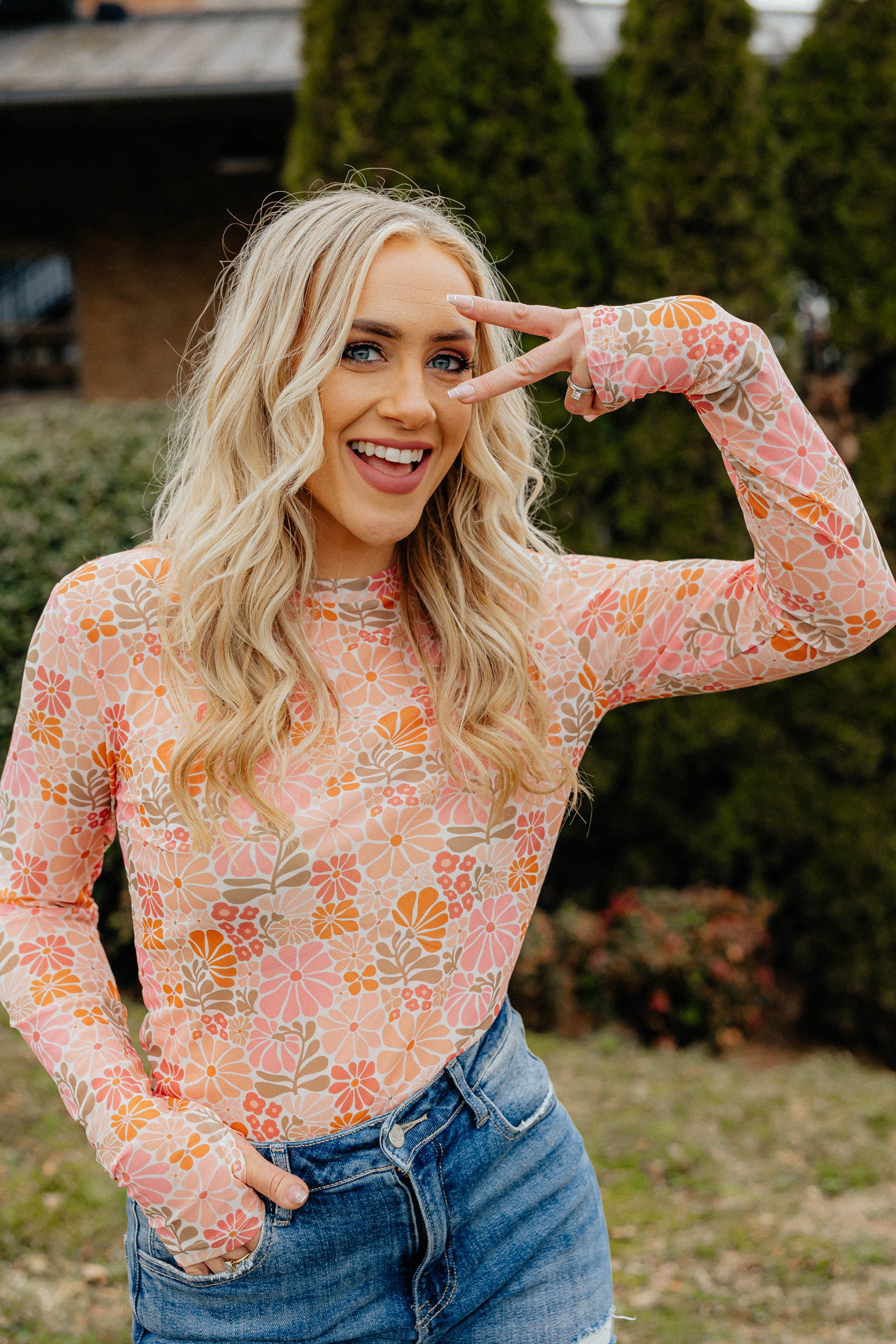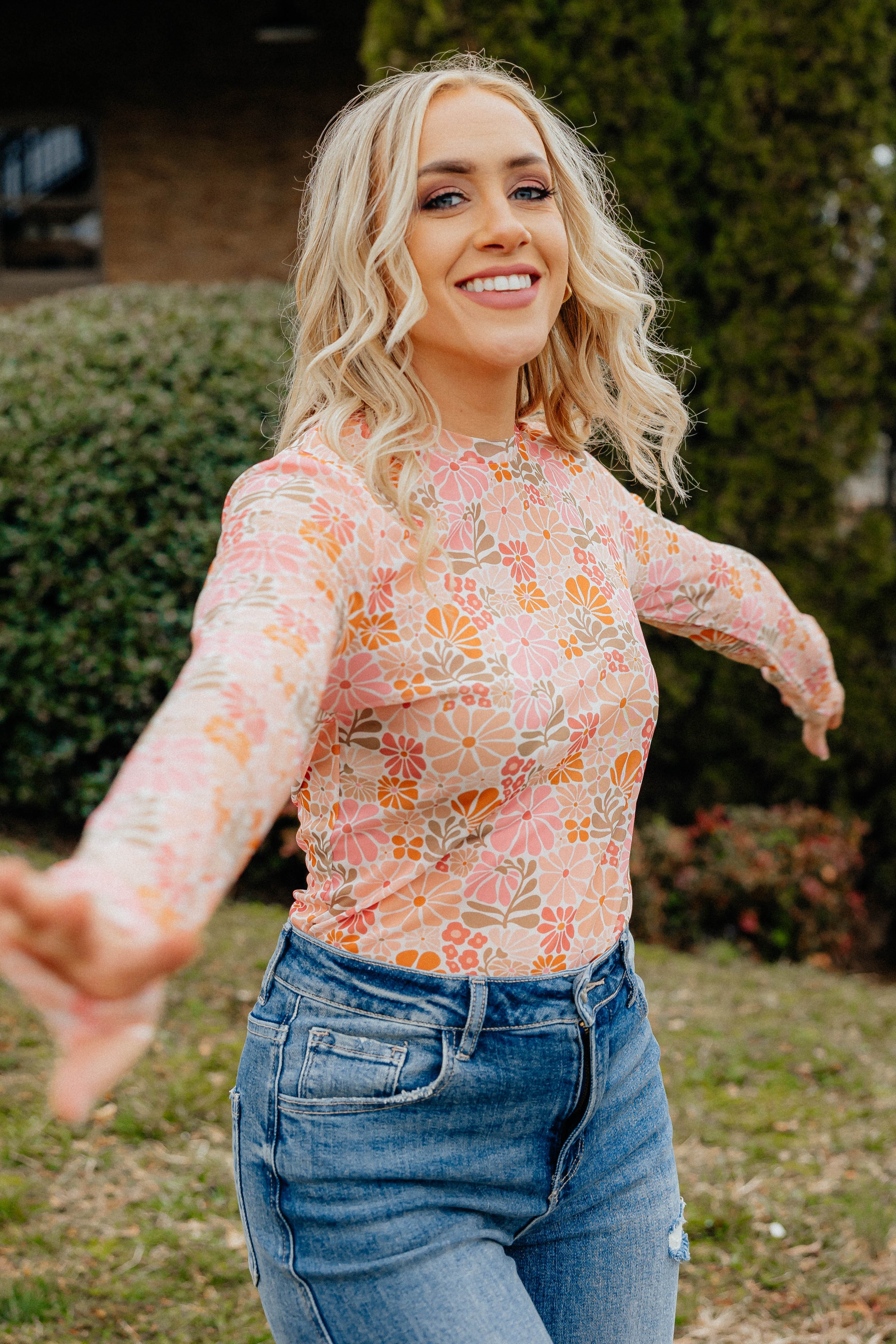 PREORDER: Retro Floral Mesh Top: Best Seller: S-3X