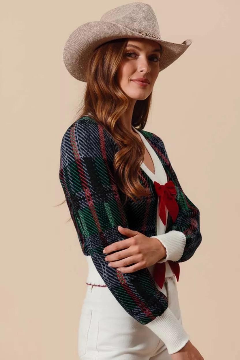 SO ME Velvet Bow Ribbon Embellished Christmas Cardigan