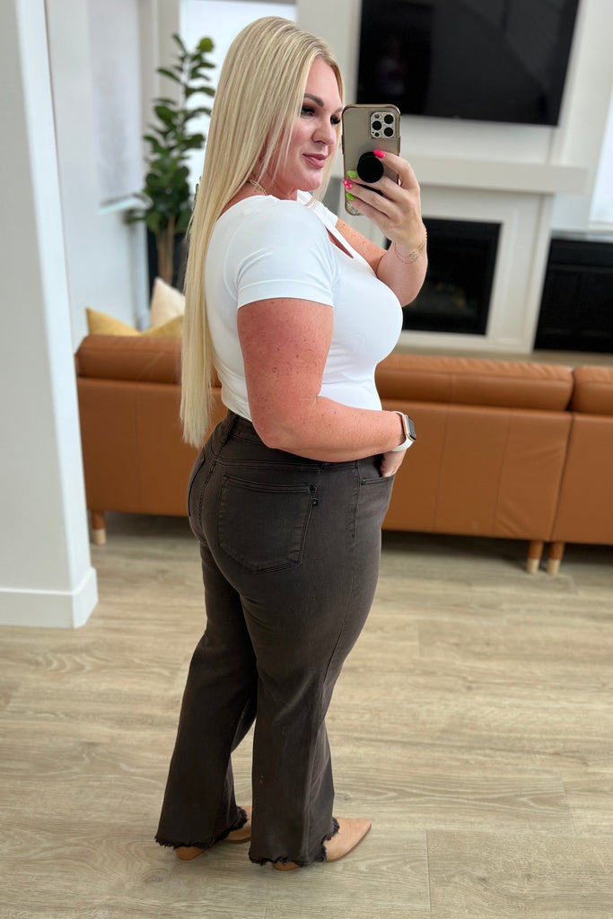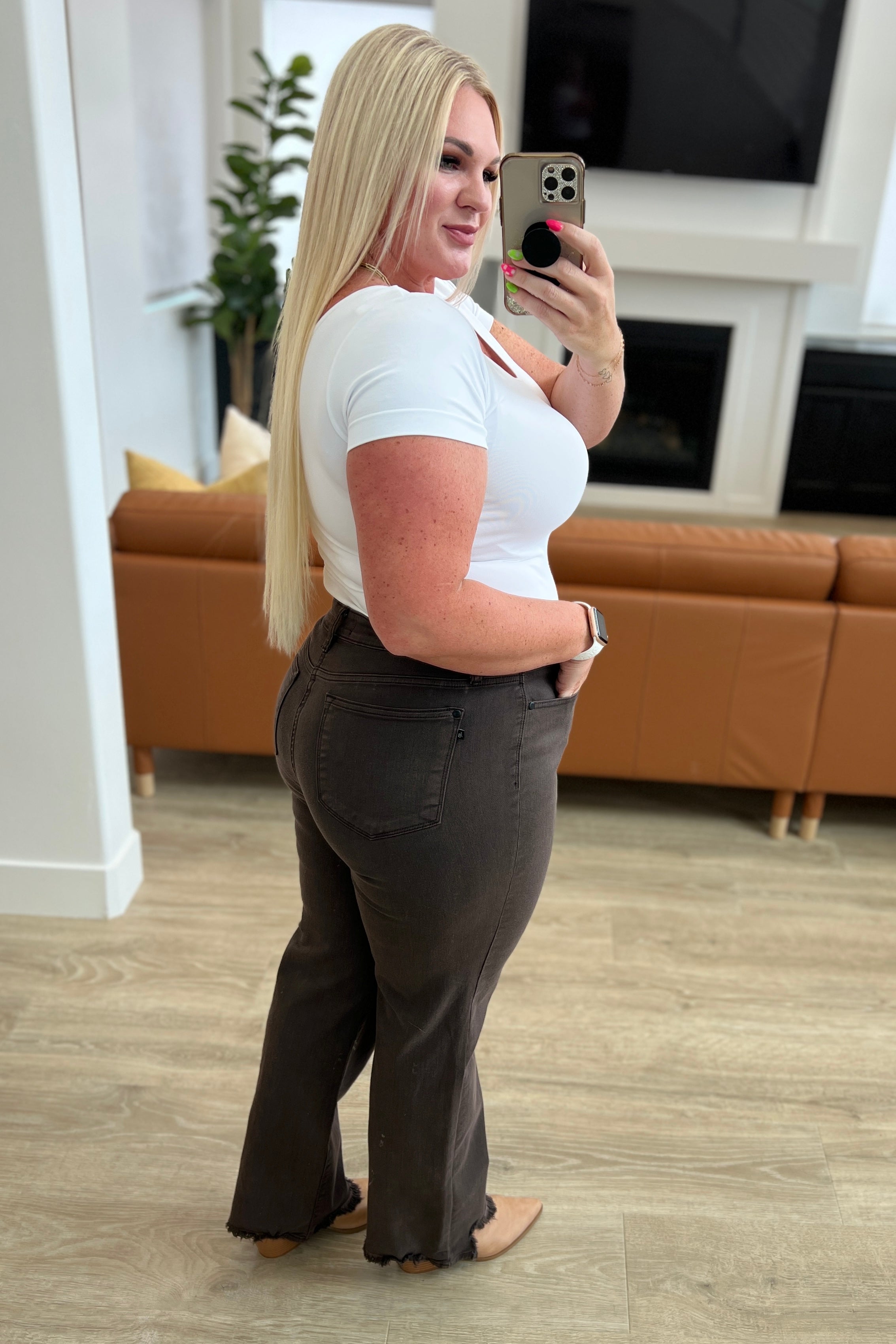 Feel your best in these Sybil High Rise Frayed Hem 90's Straight Jeans from Judy Blue. Crafted from garment-dyed fabric for a timeless look, they have a mid to high rise fit with a raw, frayed hem and a throwback 90's straight cut. With a distinctive, rich coca brown color, you'll want to wear them all season long!