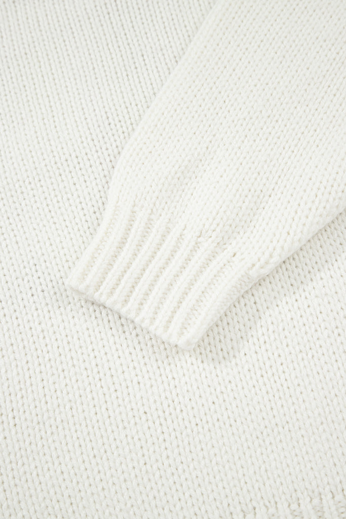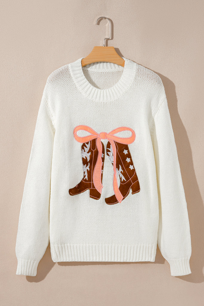 - Embroidered bow boots graphic adds playful charm to this chic sweater.