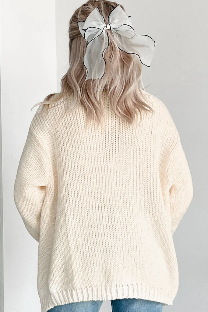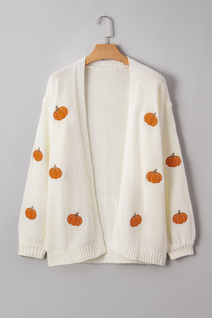 White Pumpkin Print Open Front Drop Shoulder Midi Cardigan
